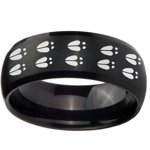 (Wholesale)Black Tungsten Carbide Deer Track Ring - TG4282