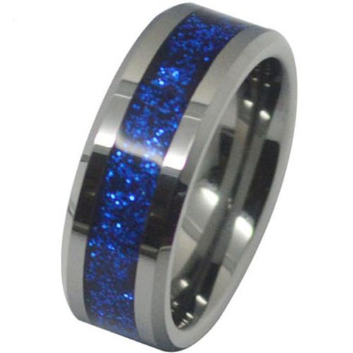 Tungsten Carbide Ring With Blue Fiber Inlays